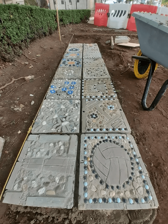 Here is a brief video that gives an overview of the mosaic slabs laid within the garden: